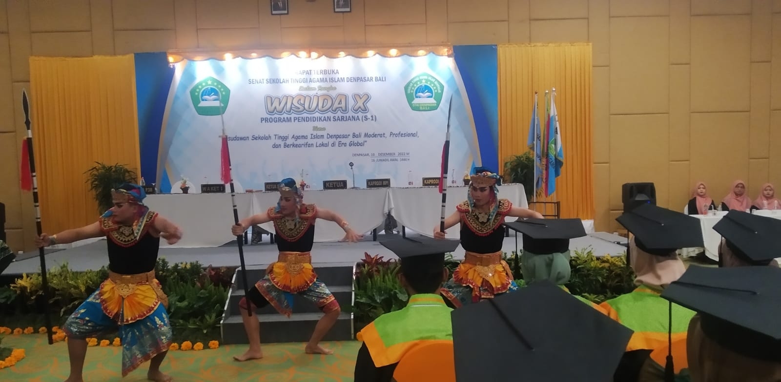 Gending Tari Wirayuda menggema di ruangan Wisuda X – 2022 Sekolah Tinggi Agama Islam (STAI) Denpasar (10/11) yang digelar di Harris Hotel Denpasar.