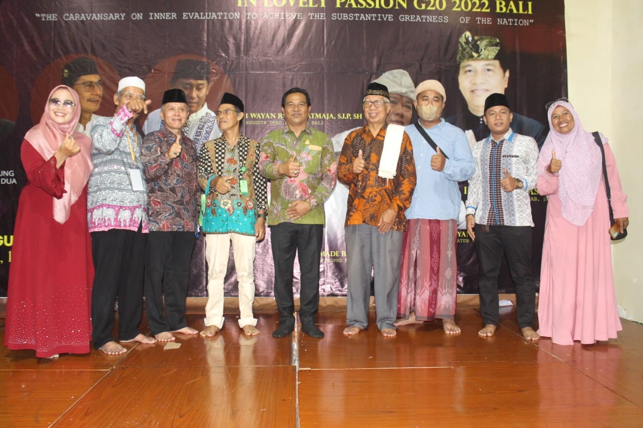 Anggota DPRD Provinsi Bali Rawan Atmaja, SH bersama Ketua MUI Provinsi Bali, Drs. H Mahrusun M.Pd.I.; Ketua Paguyuban Puja Mandala, Drs Wayan Solo, M.Si bersama Pengurus Yayasan Masjid Agung Ibnu Batutah, H Jumali;